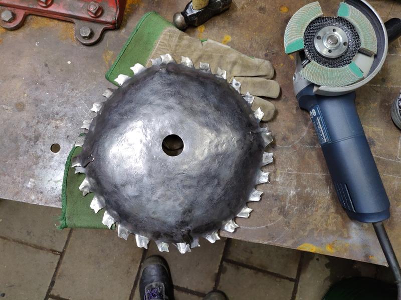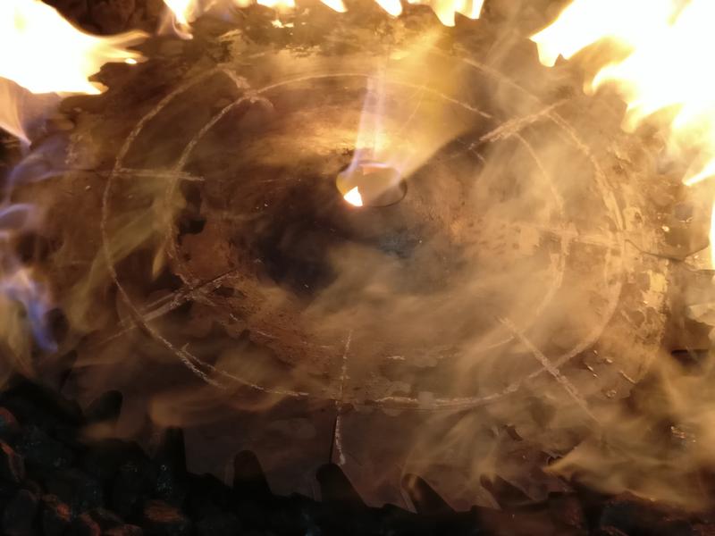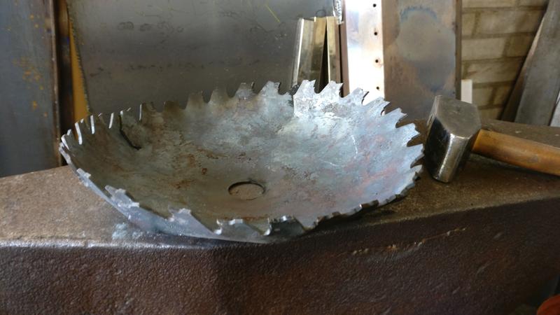 Starting out with the old sawblade, drawing out the sections that will help with the raising process.